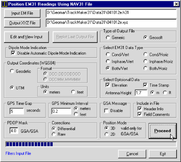 Załączony program dla Windows procesujący dane polowe pozwala również uwzględnić offset anteny GPS w stosunku do centralnego punktu instrumentu. Ten sam program umozliwia utworzenie plików typu XYZ z danymi elektromagnetycznymi oraz elewacją terenu z zastosowaniem szeregu parametrów i filtrów uwzględniających różne warunki pracy odbiormika GPS, procedury używanej w polu oraz przekształcenie plików na szereg róznych formatów. Oprogramowanie TrackMaker jest z powodzeniem używane w wielu projektach w Pólnocnej Ameryce jak i w Europie, przyczyniając się do wzrostu jakosci pomiarów jak i zmniejszenia kosztów w projektach które uzywają GPS do okreslania pozycji instrumentu. ![]() |